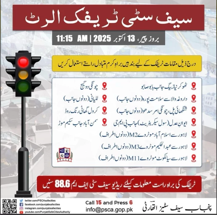 Due to security concerns and the ongoing emergency in Lahore, most of the internal roads of the city are closed. While all the internal and external roads of the motorways to and from other cities are also closed.