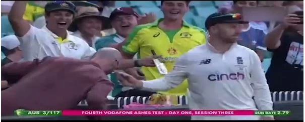 کرکٹر اپنے مداح کے پاس جاتے ہیں اور اُس کے گنجے سر پر اپنا دستخط کرکے انوکھا آٹوگراف دیتے ہیں۔ اسپنر جیک لیچ کا یہ انداز گراؤنڈ میں لائیو دِکھایا گیا تھا جس کے بعد پورا میدان تالیوں سے گونج اٹھا تھا۔