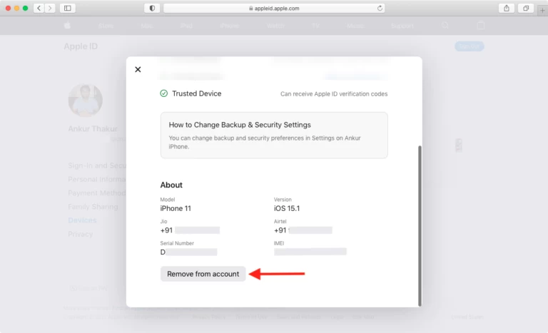 6۔ آئی فون کو اپنی ٹرسٹڈ ڈیوائس کی فہرست سے ہٹادیں