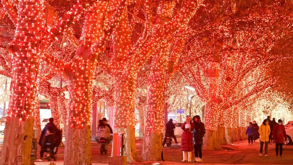 چین میں ہر سال نئے قمری سال کے آغاز پر مختلف رسومات ادا کی جاتی ہیں ، اس سال بھی چین میں شہریوں نے ڈرم بجائے اور خوشحالی کی دعائیں کیں ۔ سال نو پر چین میں دعوتیں، پریڈ اور آتش بازی کا شاندار مظاہرہ کیا گیا ، سڑکوں کو رنگارنگ پھولوں اور لال سجاوٹی روشنیوں اور اشیاء سے سجایا گیا ہے ۔