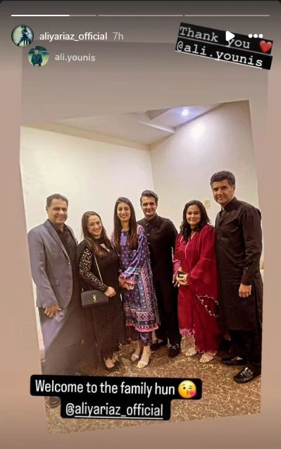 عالیہ ریاض کی منگنی قومی کرکٹ ٹیم کے سابق کپتان اور کوچ وقار یونس کے چھوٹے بھائی علی یونس کے ساتھ ہوئی۔