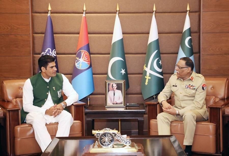ریکارڈ ہولڈر اولمپئن ارشد ندیم نے چیئرمین جوائنٹ چیفس آف سٹاف کمیٹی جنرل ساحر شمشاد مرزا سے ملاقات کی۔
