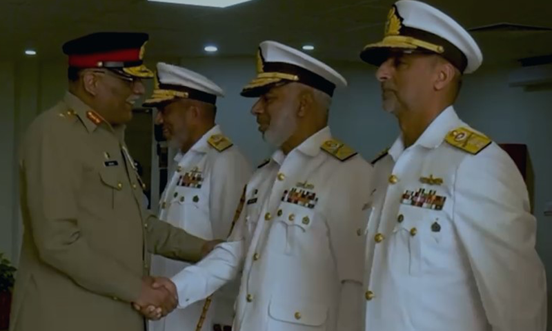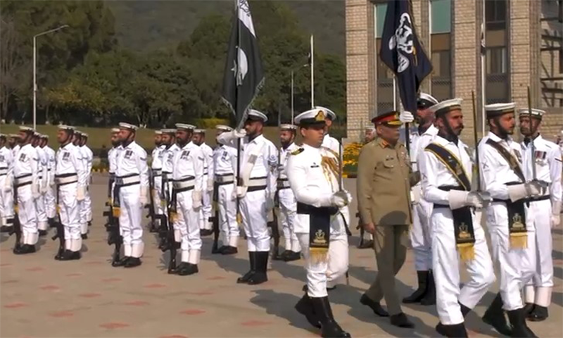 اس سے قبل نیول ہیڈکوارٹرز پہنچنے پر جنرل ساحر شمشاد مرزا کو ایک چاک و چوبند دستے نے گارڈ آف آنر پیش کیا، اُنہوں نے نیول افسروں سے ون ٹو ملاقات کی اور مصافحہ بھی کیا۔