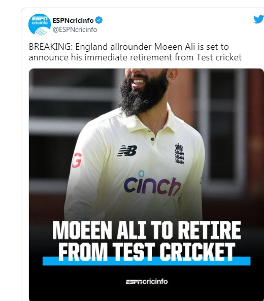 لندن : انگلینڈ کے آل راونڈر معین علی نے ٹیسٹ کرکٹ سے ریٹائرمنٹ لے لی ہے۔