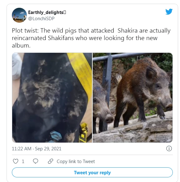 غیر ملکی میڈیا کے مطابق شکیرا کا کہنا ہے کہ وہ بارسلونا کے ایک پارک میں اپنے بیٹے کے ساتھ وقت گزار رہی تھیں کہ اچانک سے 2 جنگلی سوروں نے ان پر حملہ کردیا ، خوش قسمتی سے وہ اور ان کا بیٹا محفوظ رہا ،۔