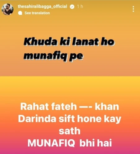 Sahir Ali Bagga stated in his post that Rahat Fateh Ali Khan is a beast as well as a hypocrite. May God curse the hypocrite.
