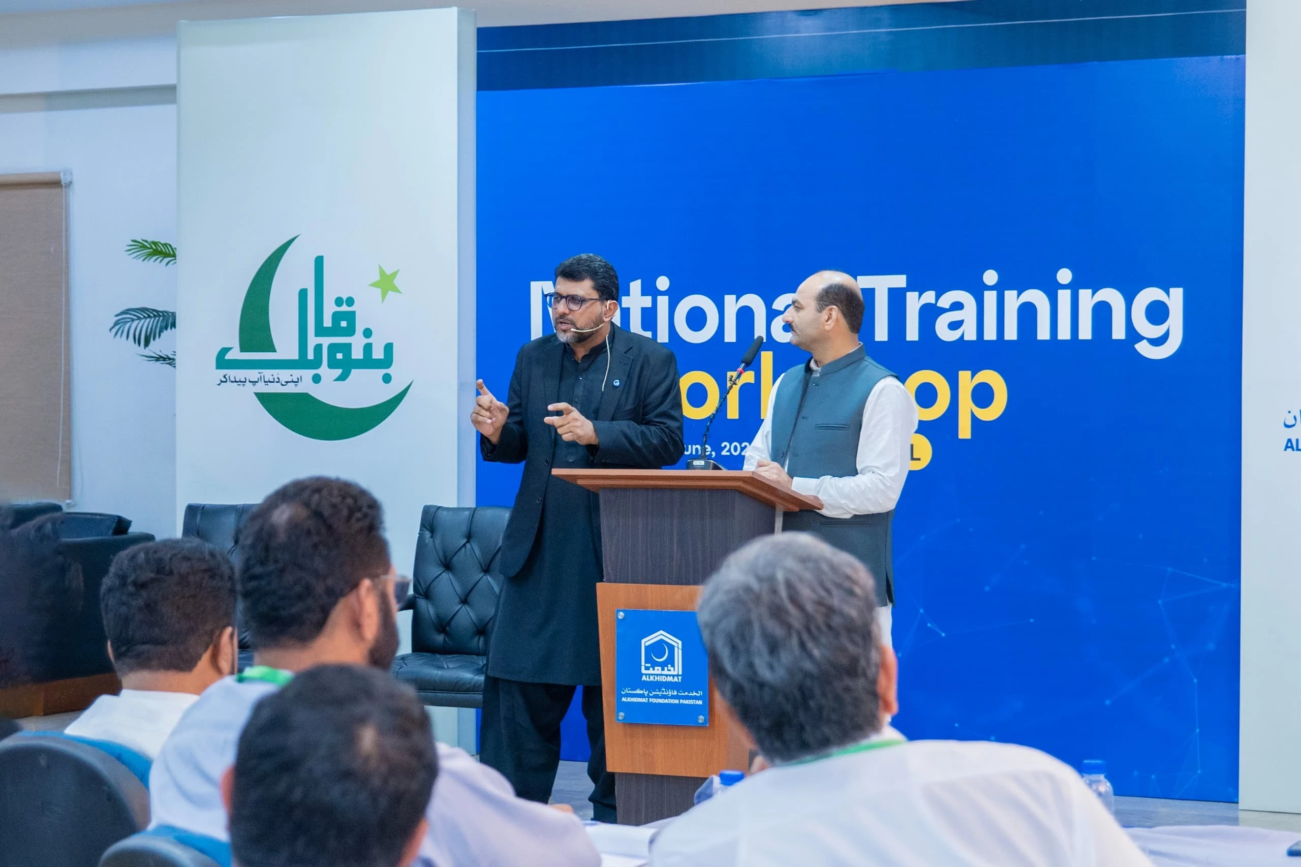 During the workshop, key sessions were led by senior officials including Syed Waqas Jafri (Secretary General, Alkhidmat), Shahid Iqbal (CEO, Bano Qabil), Umair Idrees (Director, Bano Qabil), Raja Haris (Coordinator, Web Portal Operations), and Farooq Kamalani (Lead Trainer), among others.