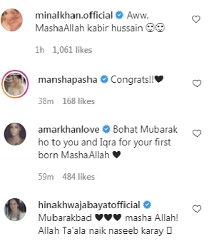 Karachi: Pakistani celebrity couple, Iqra Aziz and Yasir Hussain have welcomed their first child together.