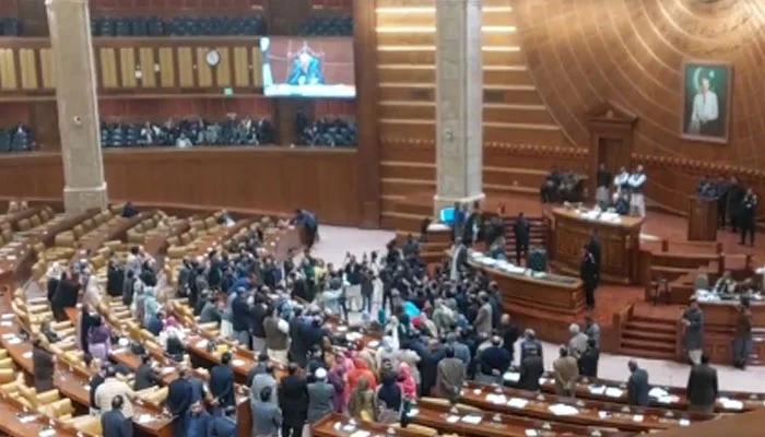 اجلاس کے آغاز پر سپیکر ملک محمد احمد خان کی ہدایت پر پوپ فرانسس کے انتقال پر ایوان میں ایک منٹ کی خاموشی اختیار کی ، گذشتہ روز بھی اپوزیشن ارکان ایوان میں نعرے بازی کرتے ہوئے داخل ہوئے ،اپوزیشن ارکان سپیکر ڈائس کے سامنے بانی پی ٹی آئی کی تصاویر لے کر نعرے بازی کرتے رہے۔