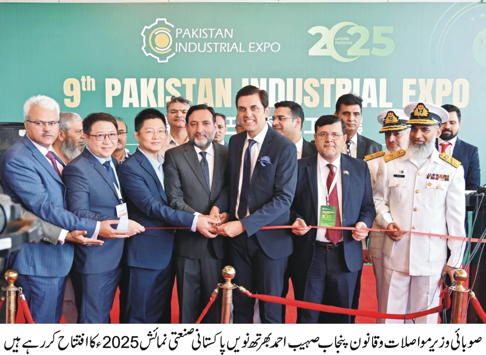 صنعتی نمائش کا افتتاح صوبائی وزیر مواصلات و قانون صہیب احمد بھرتھ نے ایکسپو سنٹر لاہور میں کیا۔